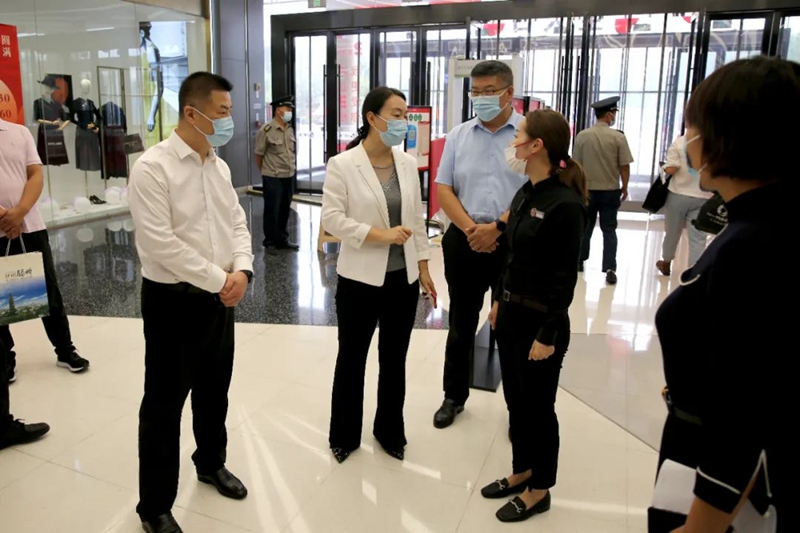 9月9日,市商务和投资促进局党组书记崔波、局长单金凤带队来人和广场检查疫情防控及安全生产工作。集团总经理侯钦军、副总经理赵海军陪同活动。崔波一行重点检查了人和广场商铺员工健康监测、进入人员扫码测温及安全生产管理落实情况,要求相关负责人要严格落实主体责任,把疫情防控和安全生产工作各项要求做细做实,全力构